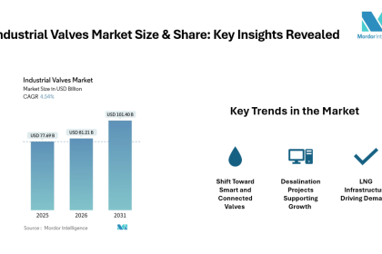 Explore the Industrial Valves market (2026–2031) with Mordor Intelligence. Get in-depth insights on market size, share, revenue, segments, key drivers,…