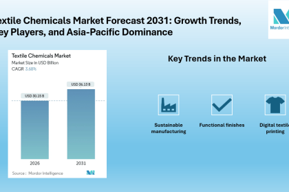 The global textile chemicals market is projected to grow from USD 30.15 billion in 2026 to USD 36.13 billion by…