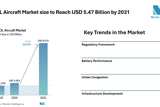 EVTOL Aircraft Market Overview According to Mordor Intelligence, the eVTOL aircraft market size is expected to grow from USD 1.19 billion in 2025 to USD 1.53 billion in 2026 and is projected to reach…
