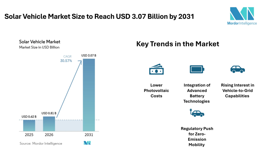 Solar Vehicle Market Size to Reach USD 3.07 Billion by 2031, Supported by Falling PV Costs – Mordor Intelligence